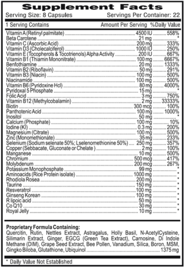 Goes Beyond the Basics: Unlike commercial multivitamins, PSO includes a powerful combination of over 20 vitamins, minerals, adaptogens, amino acids, and plant extracts.